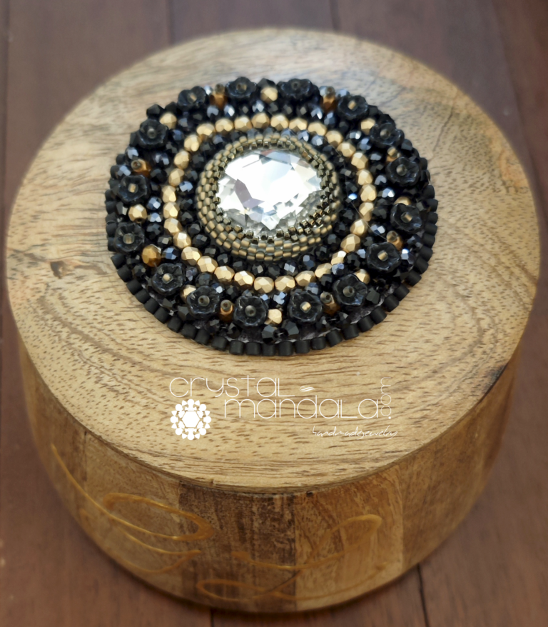 Cofanetto porta gioie in legno decorato a mano con ricamo in bead embroidery.