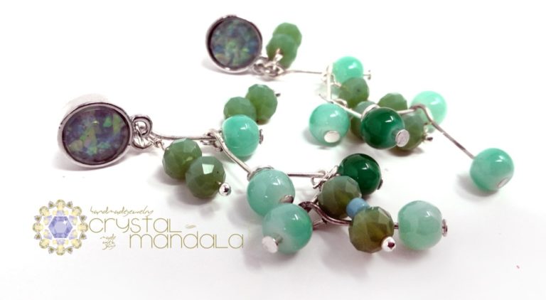 Un grappolo di perle verdi danza sinuosamente dal perno in madreperla . Pezzo unico – Realizzato a mano. Made in Italy.