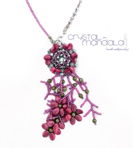 Composizione in tessitura in onore della bellezza della Primavera. Cristallo incastonato da petali rosa. Pezzo unico – Realizzato a mano. Made in Italy.